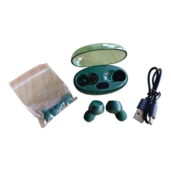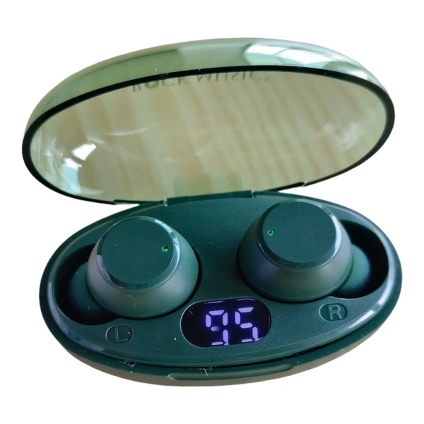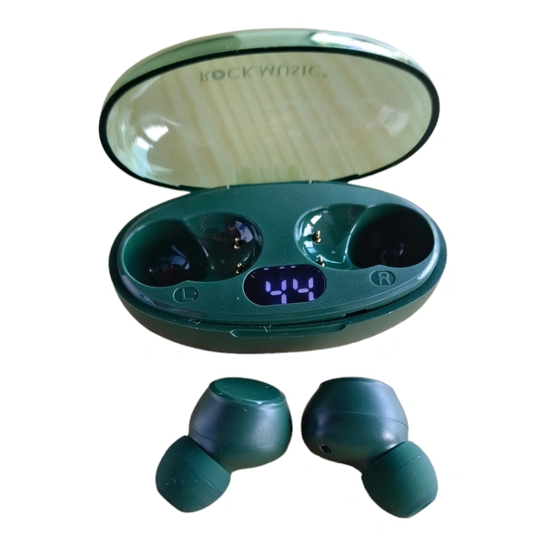 ROCK MUSIC® Buds T28 Wireless Earbuds with 40H Playtime, Instant Paring, BT5.3 Bluetooth Headset (Green, In the Ear)